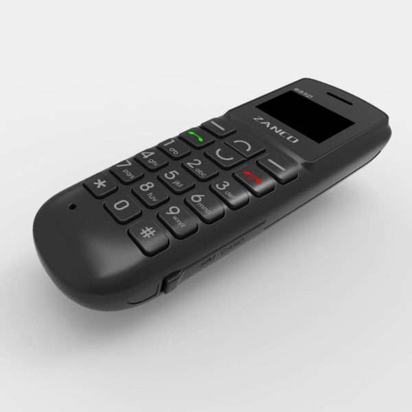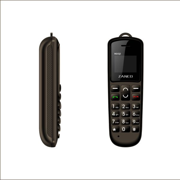 Zanco Wasp Phone – Nano-sized, fully functional phone with a mono color screen, voice changer, 3 days standby, 3 hours talk time, BT 3.0, micro SIM, and 500 contacts storage.